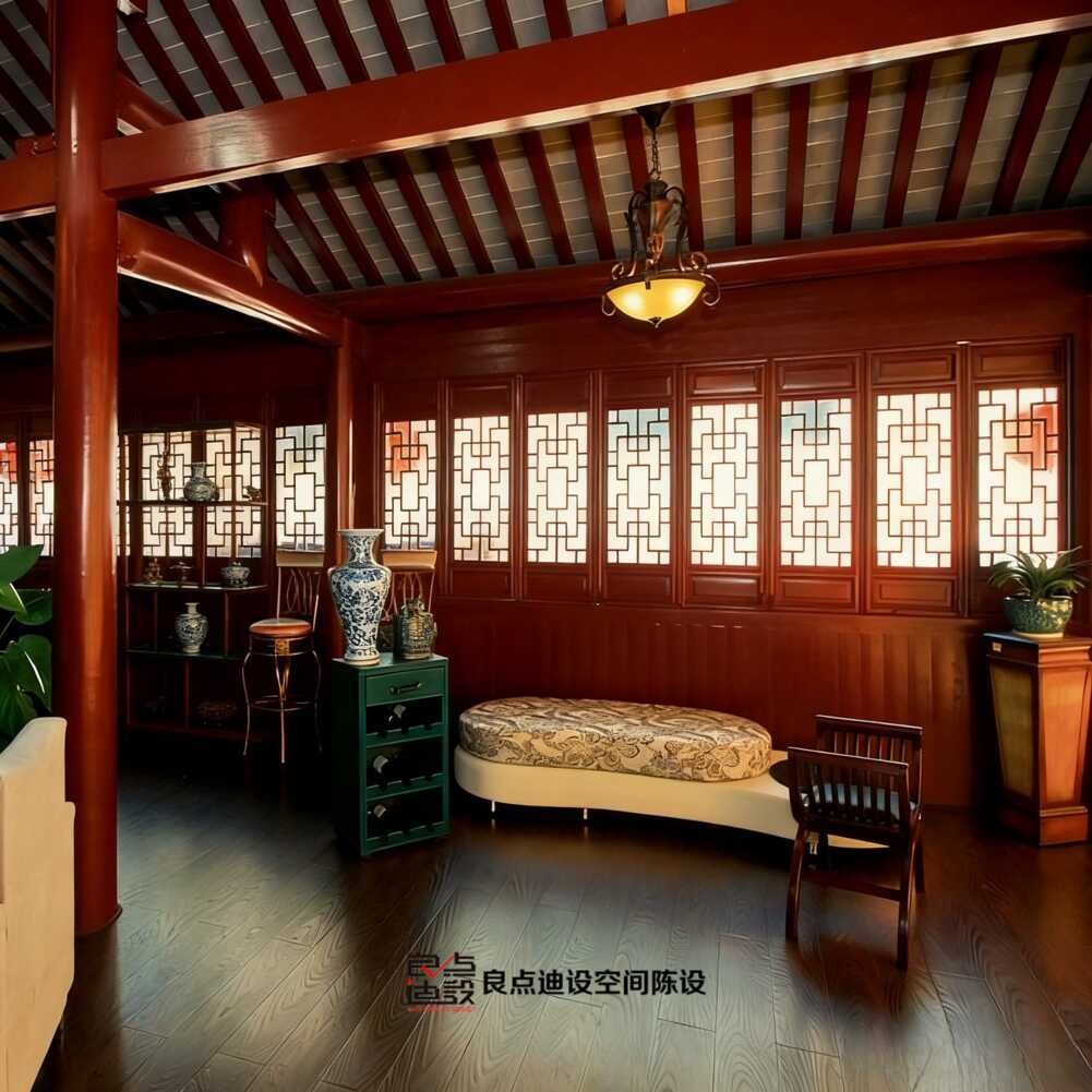 紅棕木調(diào)+復(fù)古燈?這套茶樓軟裝設(shè)計直接封...